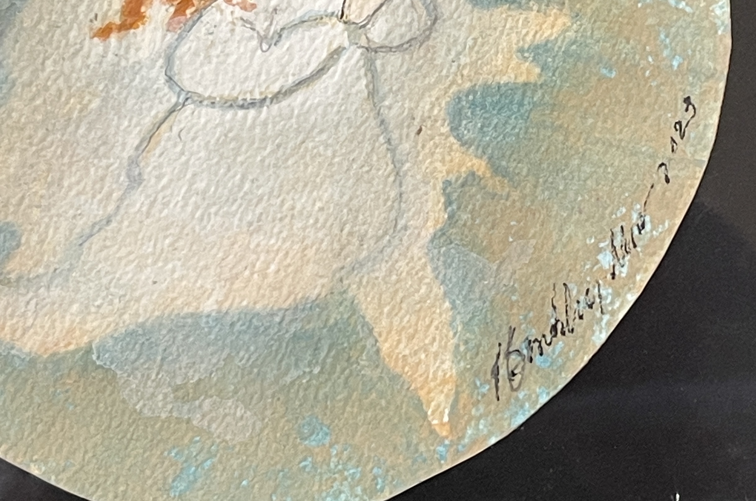 Hand Signed: “P Buckley Moss 2023” – Inside the circle starting bottom right.