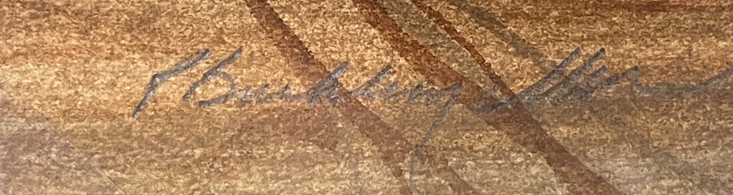 🖼️ Collector’s Insight: Original hand-signed Moss watercolors like Brown Mountain Range Painting are highly prized because they cannot be duplicated. This piece, with its rare status as a never-printed, one-of-a-kind painting, offers collectors not only a window into Moss’s artistic vision but also the unique chance to title it themselves—a true hallmark of exclusivity.