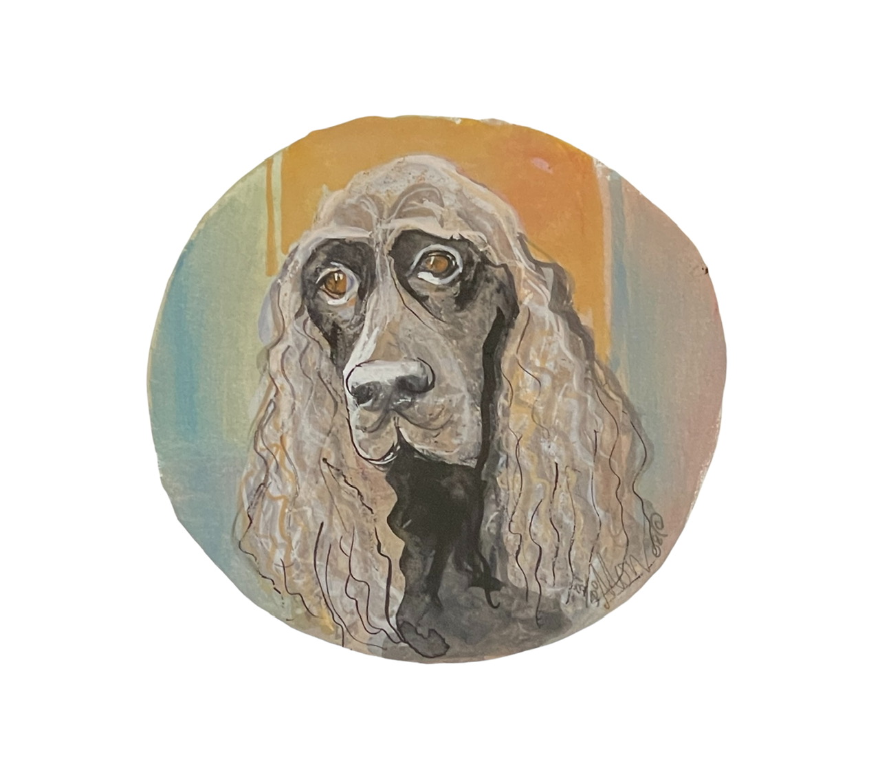 Field Spaniel by P. Buckley Moss is a signed and numbered limited edition lithograph from the beloved Moss Dog Collection, which celebrates the loyalty, charm, and beauty of our canine companions. This portrait features the soulful Field Spaniel, known for its expressive eyes and graceful long ears. Moss’s circular vignette draws attention to the dog’s tender gaze, framed against a softly blended background of warm amber, soft blue, and muted gold tones. The result is a dignified yet affectionate portrayal of one of the spaniel family’s most elegant breeds.