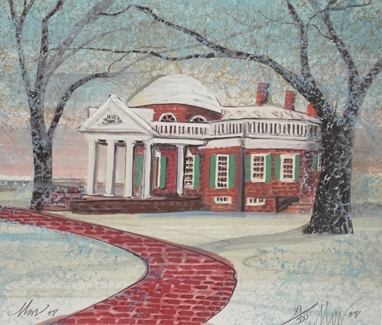 This print depicts Thomas Jefferson’s Monticello located in Charlottesville, Virginia.