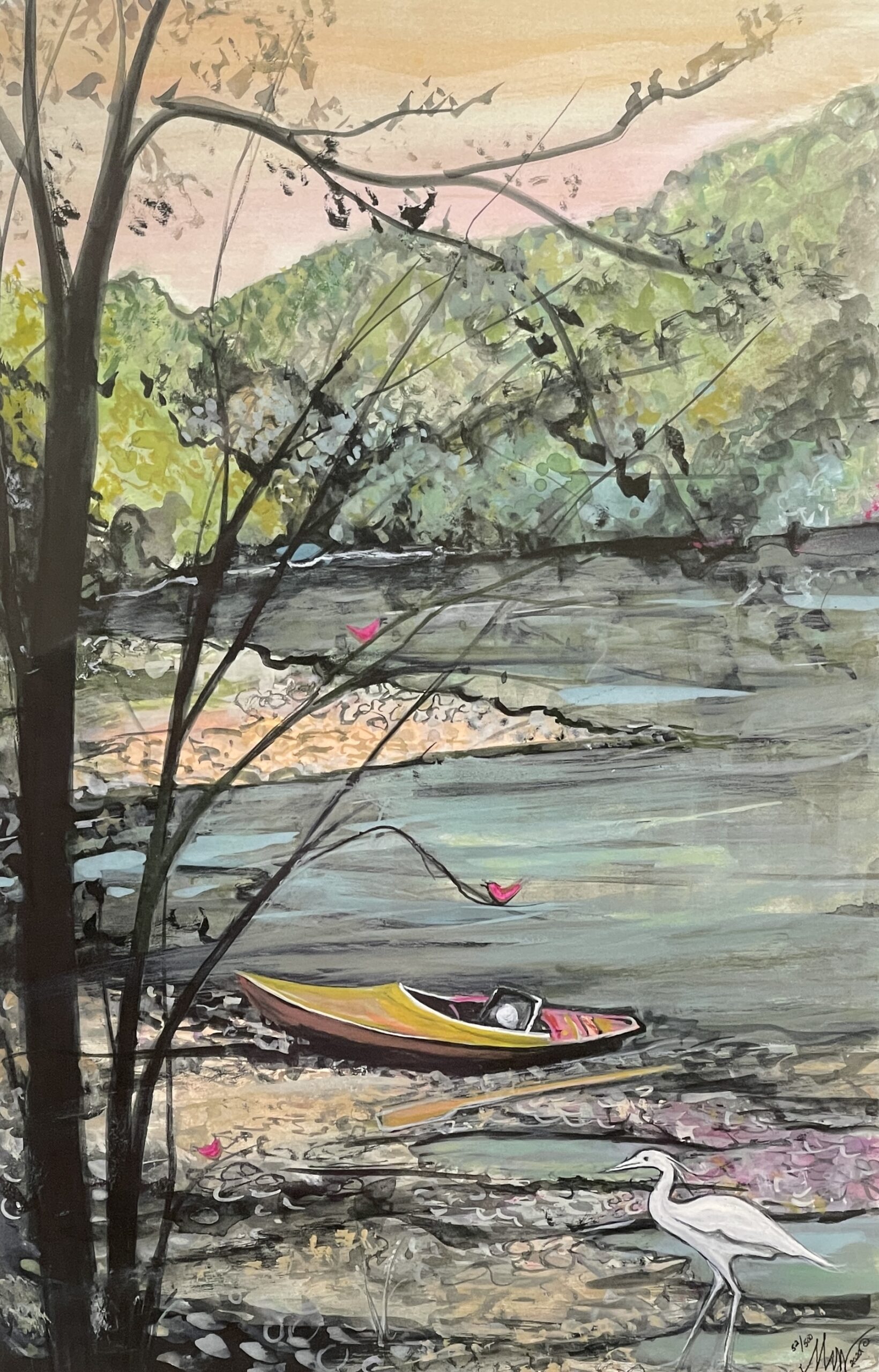 Collectors value Summer on the New River for its 2020 release and its expressive, atmospheric style. The combination of boating imagery, wildlife, and textured landscape makes this limited edition giclée a standout piece within Moss’s water-themed collections.